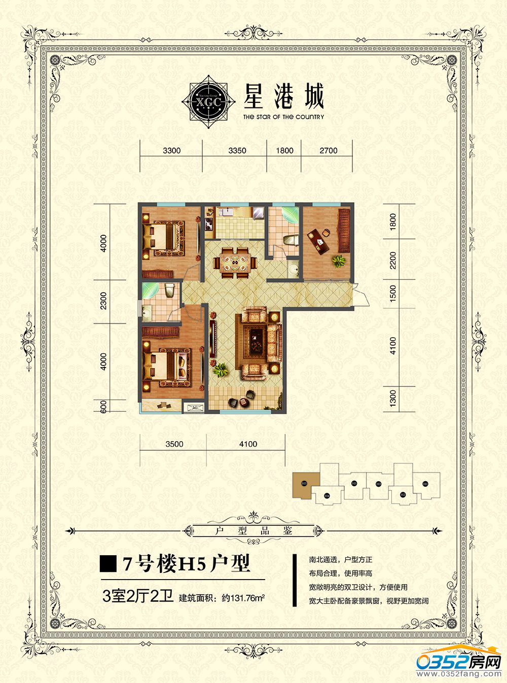 开阔的阳光草坪设置高尔夫球练习场,周围果树成林,体验采摘生活,城市中难得的静谧,整体呈现高端、优雅的风景,让业主仿佛置身于浪漫的度假场所。