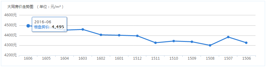 同比来看,2016年6月大同房屋均价有较大涨幅,每平米上涨169元。分析来看,2016年大同市政府回购万余套商品房用作安置政策,市场上房源大大减少,而今年新开楼盘较少,很多楼盘酝酿开盘中,楼市出现供小于求的局面,有大幅度房价的增长也在情理之中。