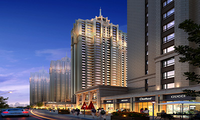 绿地璀璨天城项目的中心景观设计为具有强烈的礼仪感的轴线景观,随着中心主轴的层层递进,配合景观的营造,形成不同尺度的开放交往空间。项目将街坊道路与社区形象入口和泛会所结合设计,打造街坊情景入口。项目由四个高层组团和两个低层组团构成,减少高层对底层住宅的影响。