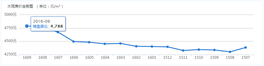 据0352房网数据中心有关大同在售新房均价走势参考显示,目前大同在售楼盘,2016年9月份统 计大同楼盘均价为4788元/㎡,8月份统计大同楼盘均价为4779元/㎡。和2016年8月相比,9月房价出现小幅 上涨,每平米上涨9元,环比上涨0.19%。
