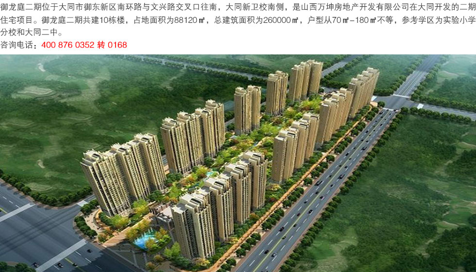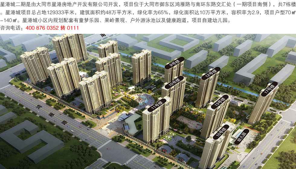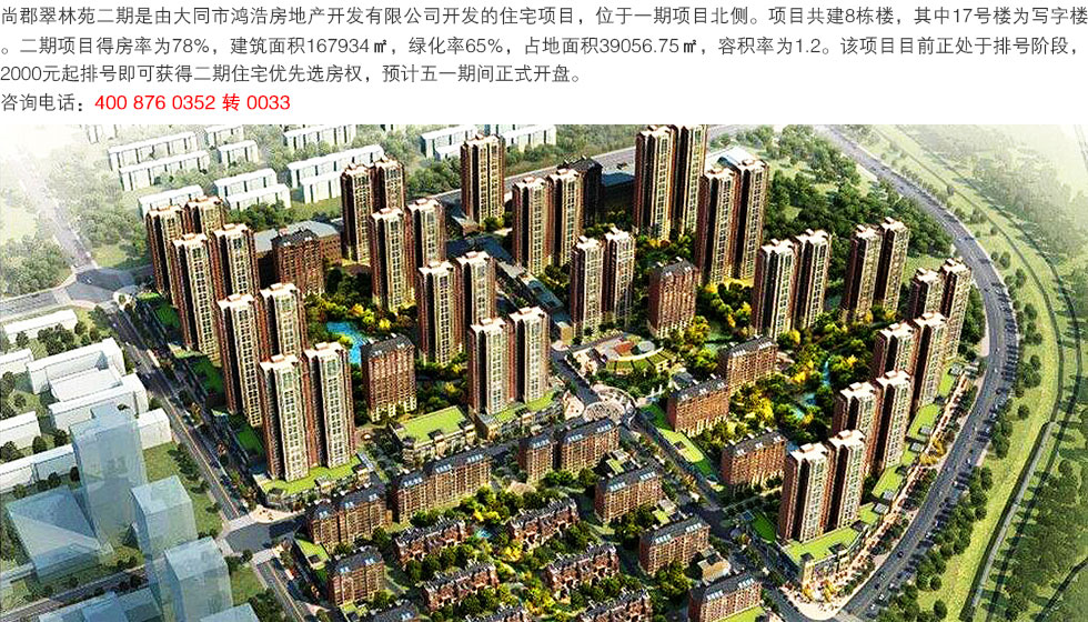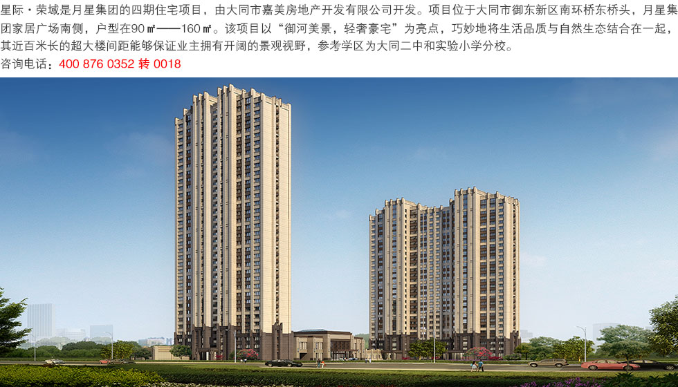 项目位于绿地世纪城的东南方向,处于文兴路与开源街交汇处的东北角,紧邻开源桥,毗邻御河景观带。项目总占地面积340余亩,总建筑面积77.8万平米,是由高层住宅和联排别墅组成的宜居社区。项目周边五医院、实验小学分校、大同二中、万达、方特等配套完善,能够满足业主生活、休闲、娱乐等需求。目前均价4500元/m2。【详情】
