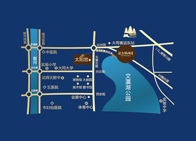 一轴双城,古今兼顾,新旧两利,大同富力富力城居于行政新中心,坐拥文瀛湖一线臻稀湖景,项目规划总占地面积2200亩,是大同市目前为止规模最大的城市综合体项目。旨在向大同人民礼献一座集甲级写字楼、星级酒店、菁英教育、专属公交场站、大型文体中心、时尚商街等多重配套于一体的醉美湖景城邦。