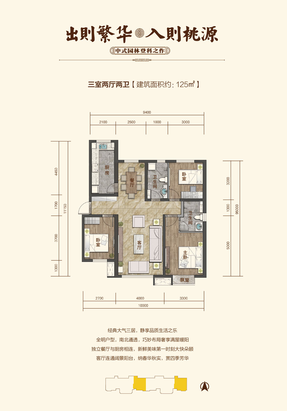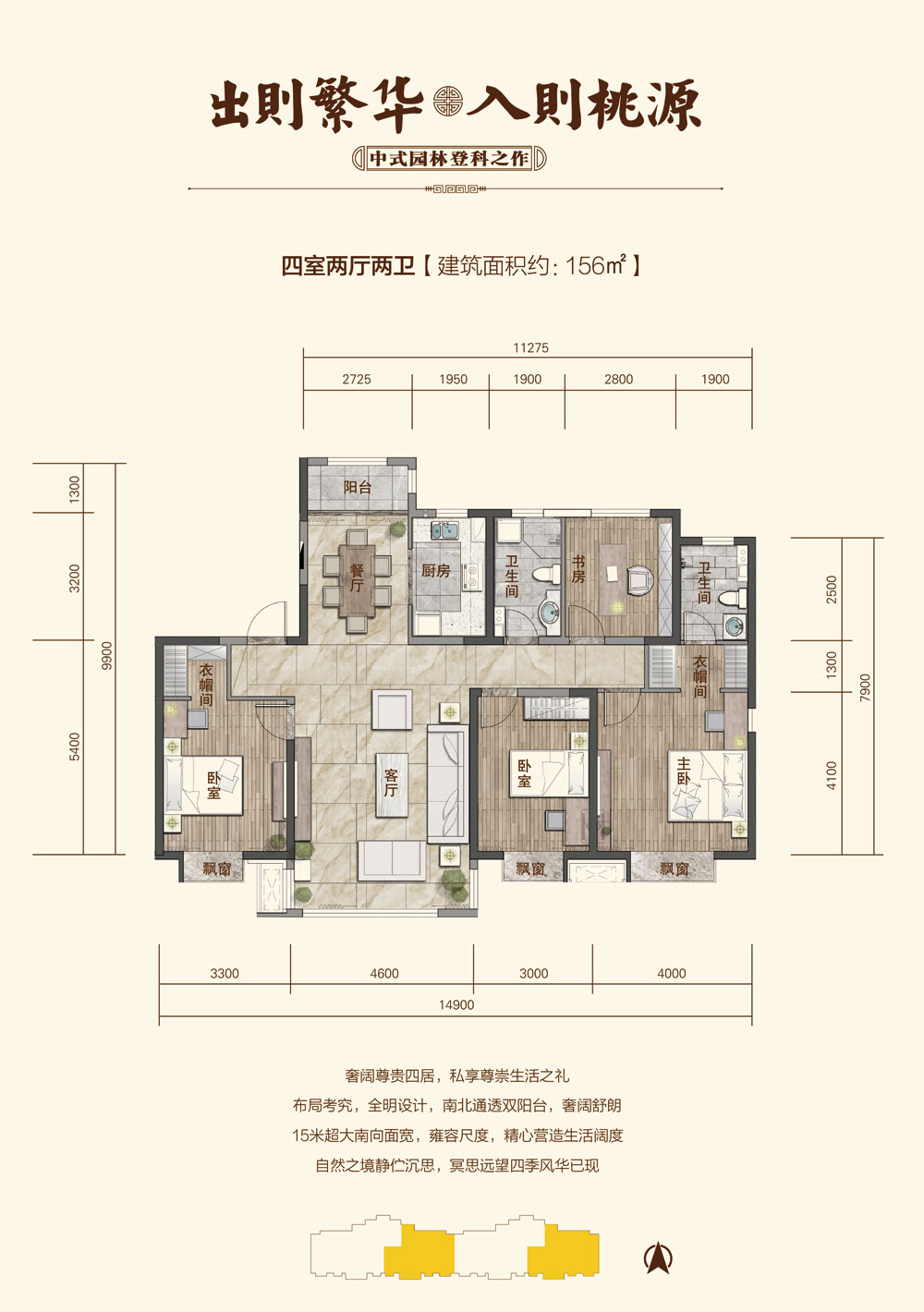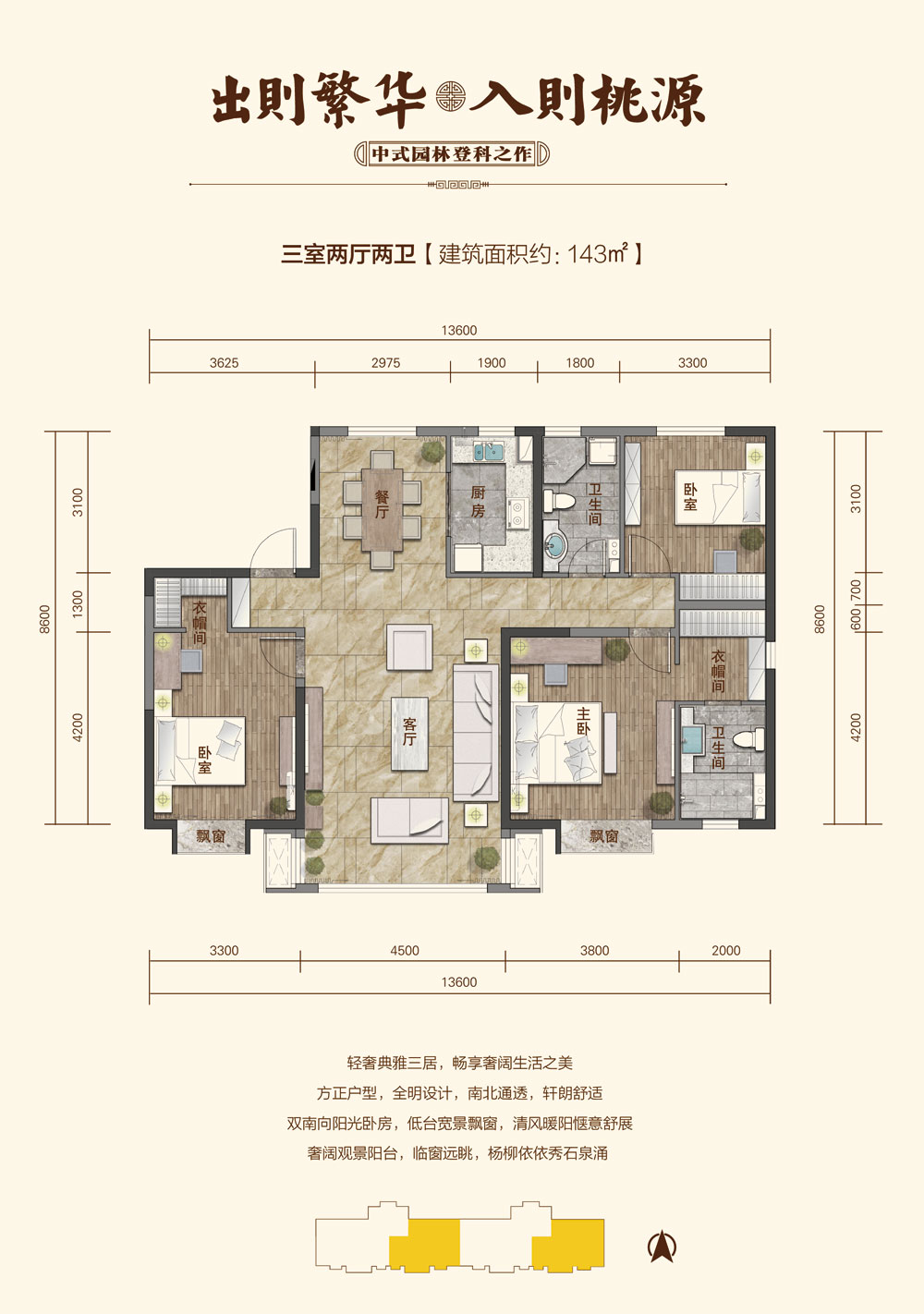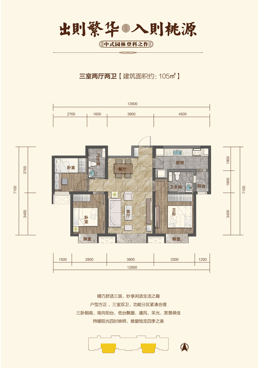 四季项目的户型设计是整个项目的重中之重,为此开发商投入了大量的资金,经过了长时间的研究终于成型,只为给广大购房者带来高品质的人居体验。四季项目户型区间为105㎡-156㎡,整体格局方正合理,丝毫不浪费空间,双卫设计,让业主生活更加舒适,阳台、飘窗相结合,让阳光满室,采光、通风、赏景一应俱全。拦尽四季之美,阅遍繁华盛景,居住于此,真正享受自然与人文完美融合带来的舒适惬意之感。幸福生活,从四季精致户型开始。