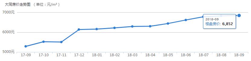 从0352房网大同房价走势图上可以看出,2018年大同房价一直呈上涨趋势,从1月份的6164元/㎡,到9月份的6852元/㎡,大同的房价几乎以每月每平米上涨近百元的速度向前冲。但是,2018年8月、9月上涨幅度有所下降,甚至是作为楼市旺季的“金九”也仅仅上涨了17元,这是不是意味着大同的房价要有放缓的趋势呢?御东新区和市区的房价又是怎样的涨幅情况呢?一起来具体分析一下!