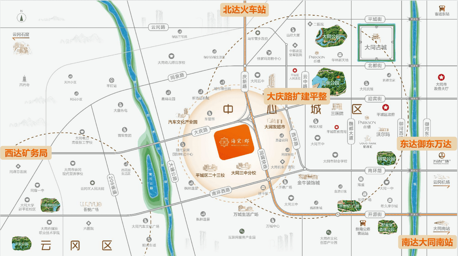 临南中环快速路,大同城市发展脊梁,20分钟老城与新区随意切换。大同区划调整,城市化脚步加快,倚傍1公里繁华商贸,