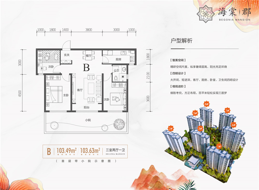 用心斟酌,使得每个户型实现低公摊,103平米可以轻松做到三居室,花最少的钱住宽敞的房子。不仅平面空间扩大而且我们的立体空间也在延伸,让阳光更充沛,空气更流通,住着更舒畅。