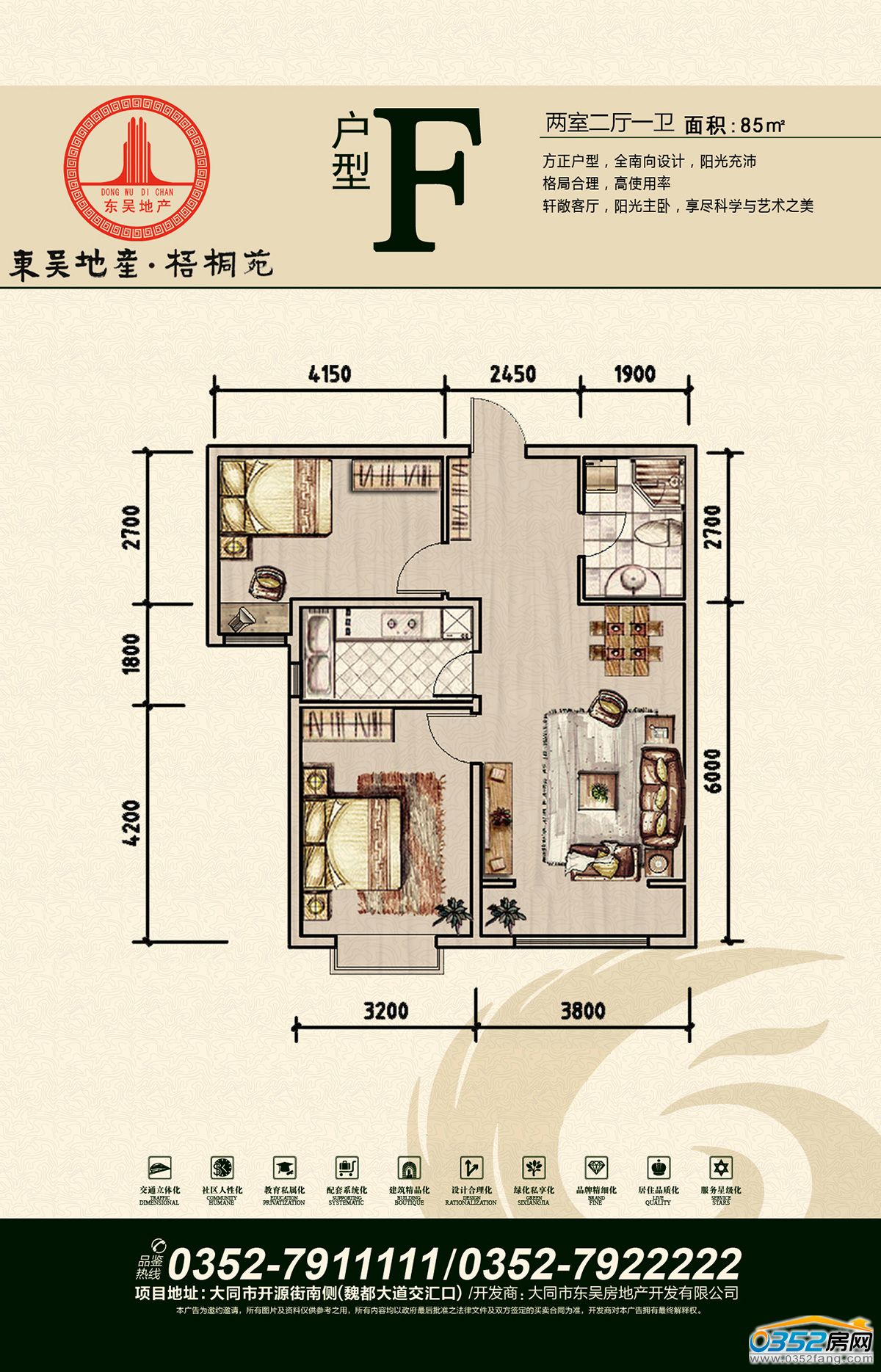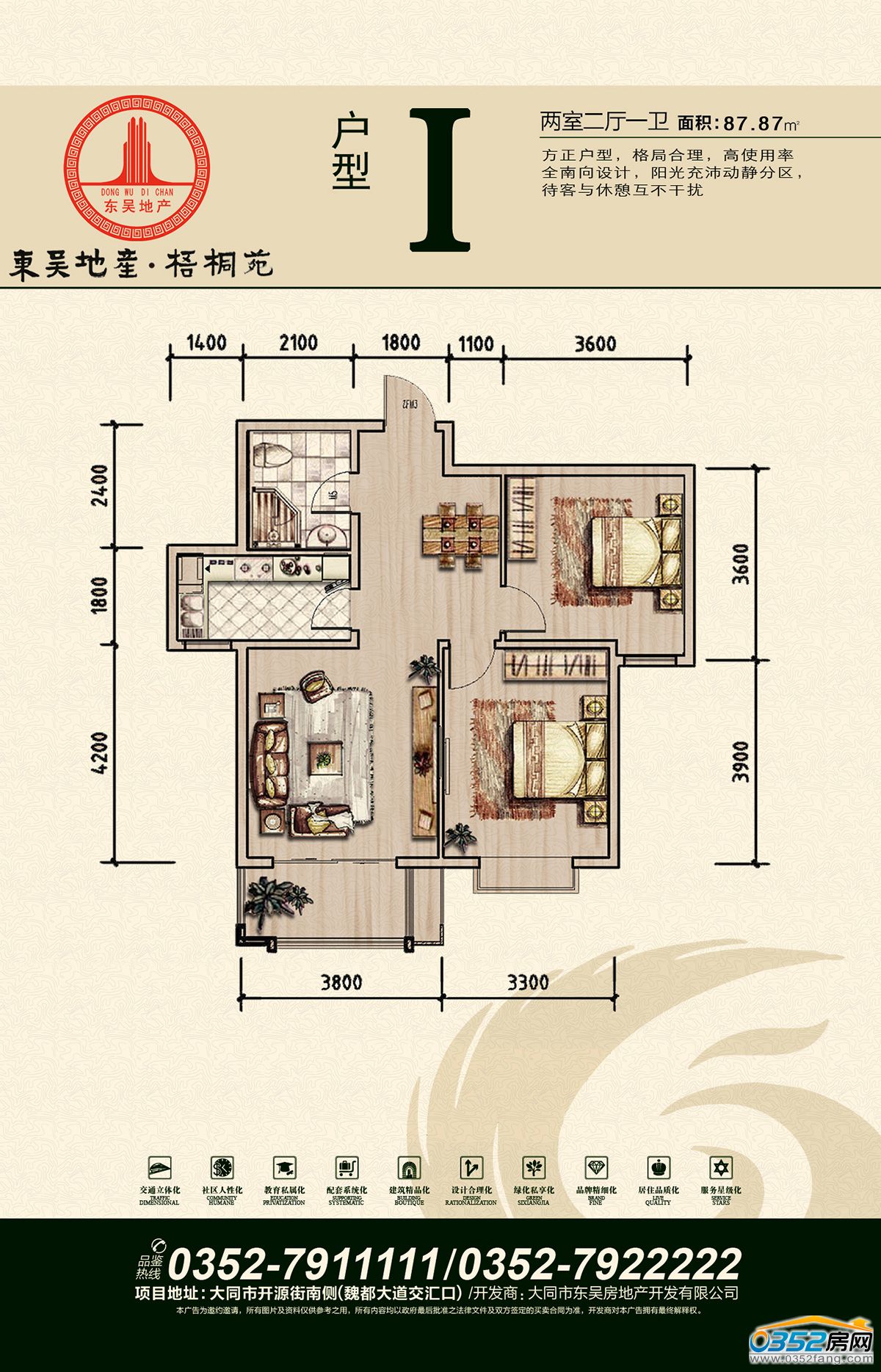 东吴地产 梧桐苑 咨询电话:400 876 0352 转 0172 售楼地址:大同市开源街南侧,南邻交通苑小区,东西邻规划路